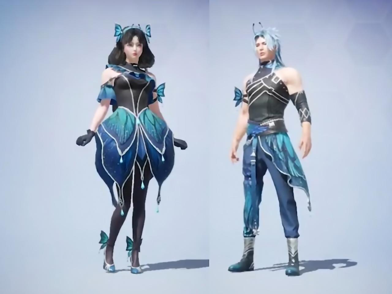 第2款套装名为“暗夜魅影”,个人觉得这款套装的女款很不错,尤其是这个短发,看上去有娇小玲珑的感觉。头饰、裙子、袜子部分,都加入了蓝色蝴蝶的元素。