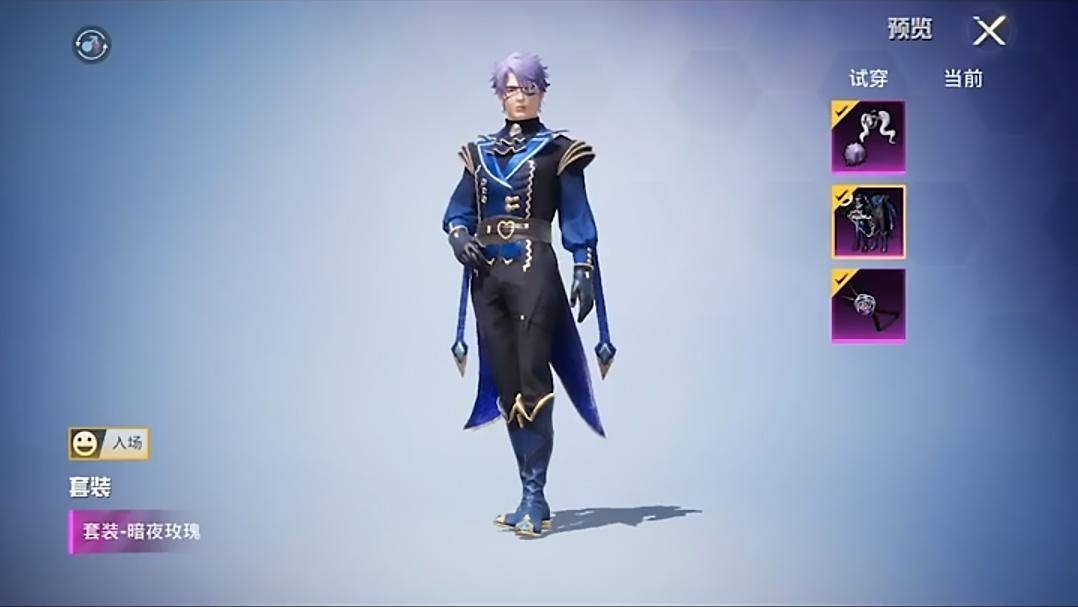 先来看整款军需的总览,这套“暗夜玫瑰”军需,是属于普通的珍藏宝箱,有1款粉级套装和2款紫色品质套装,还有1把升级枪,除此之外标准军需的皮肤都是有的。