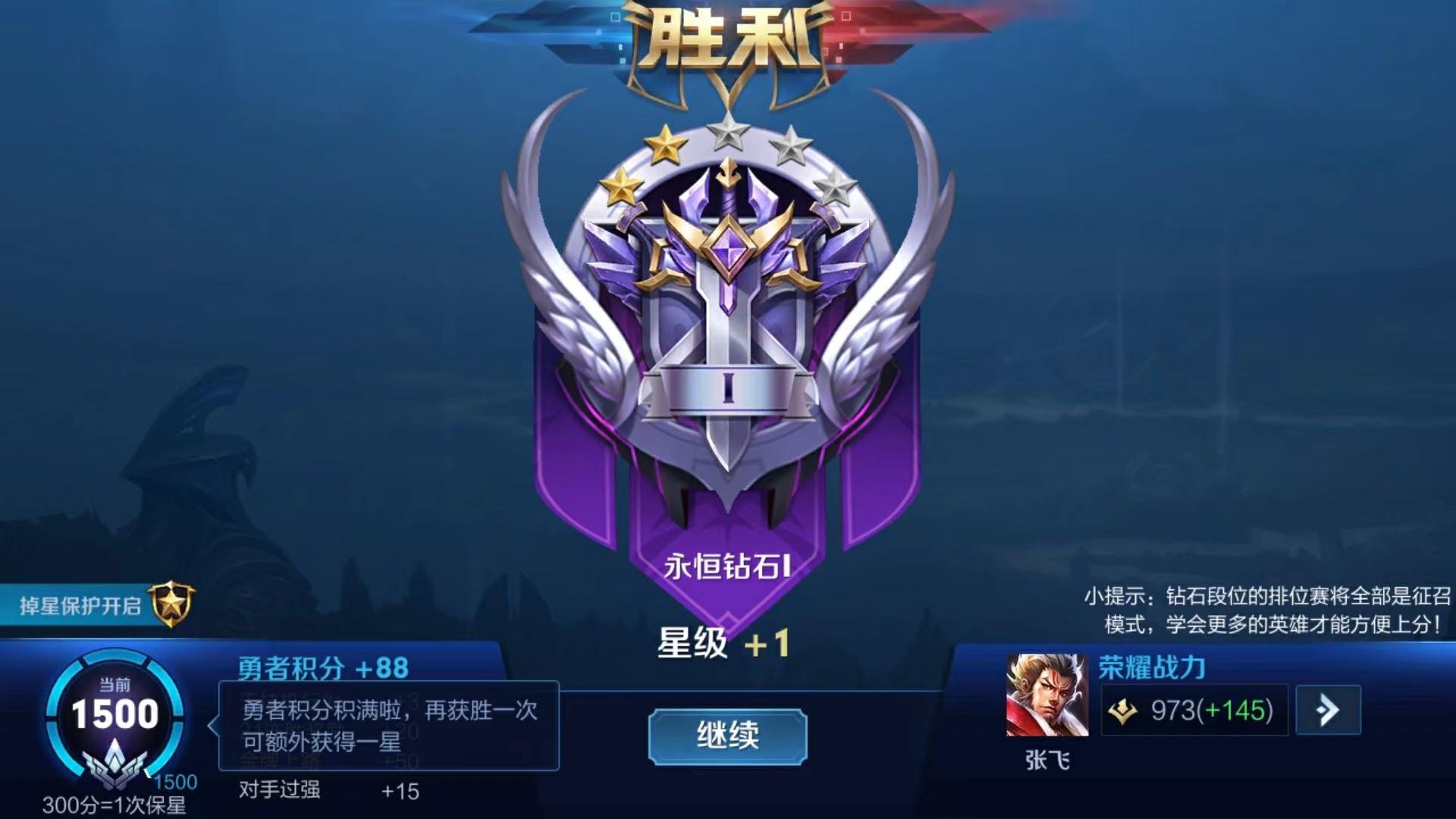 比如在钻石星耀分段,300勇者积分可以抵消一次掉星,1500勇者积分就是积分上限了,这个时候如果再赢下一局,那么就会一次性增加2颗星,注意,1500积分并不会全部消耗掉。
