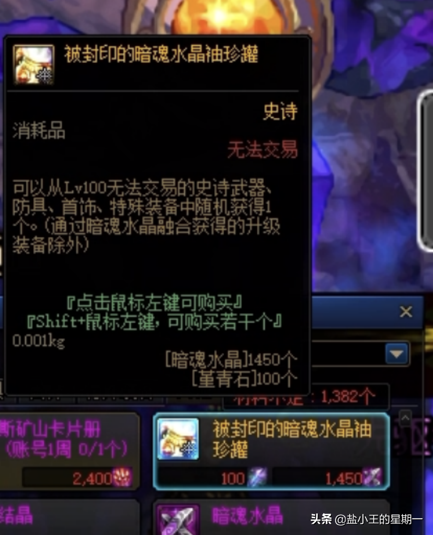 其次是通关日常地下城获得和部分材料兑换罐子获得(例如使用1450个暗魂水晶可兑换一个随机史诗罐子)