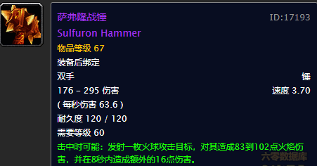 不得不说,由于萨弗隆铁锭是制作萨弗隆战锤的必需材料,这也导致了其价格向来都是很贵的,更重要的是,这个锭也只有熔火之心8号BOSS焚化者古雷格曼掉落。