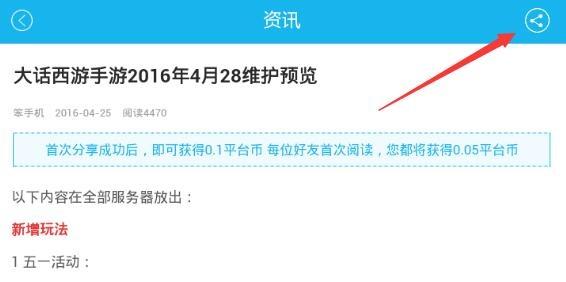 (2)分享资讯(0.1平台/次,资讯攻略或图集每日分享上限20篇)