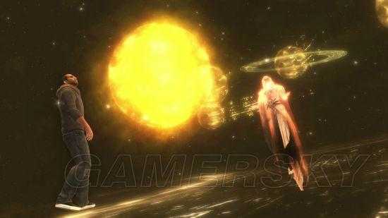 正是在此地,戴斯蒙德见到了又一名第一文明成员:Jupiter。该高级种族解释道,其他第一文明的成员在世界各地都建造了,致力于研究各种办法,希望能使地球免遭太阳耀斑之害。每个神殿的研究成果都会传送至大神殿 (位于现代纽约北部),Jupiter、Juno 和 Minerva 在那里对各类发现进行分类。总的来说,他们试验了六个解决方案,虽说都失败了,但一项重大突破似乎也逐渐浮出水面。很不幸,他们还没来得及得出结论,大规模的太阳耀斑就已袭击地球,杀死了几乎整个第一文明。活下来的人类不足一万,第一文明的人更少得可怜,但灾难之后,两个种族合力重建人类文明