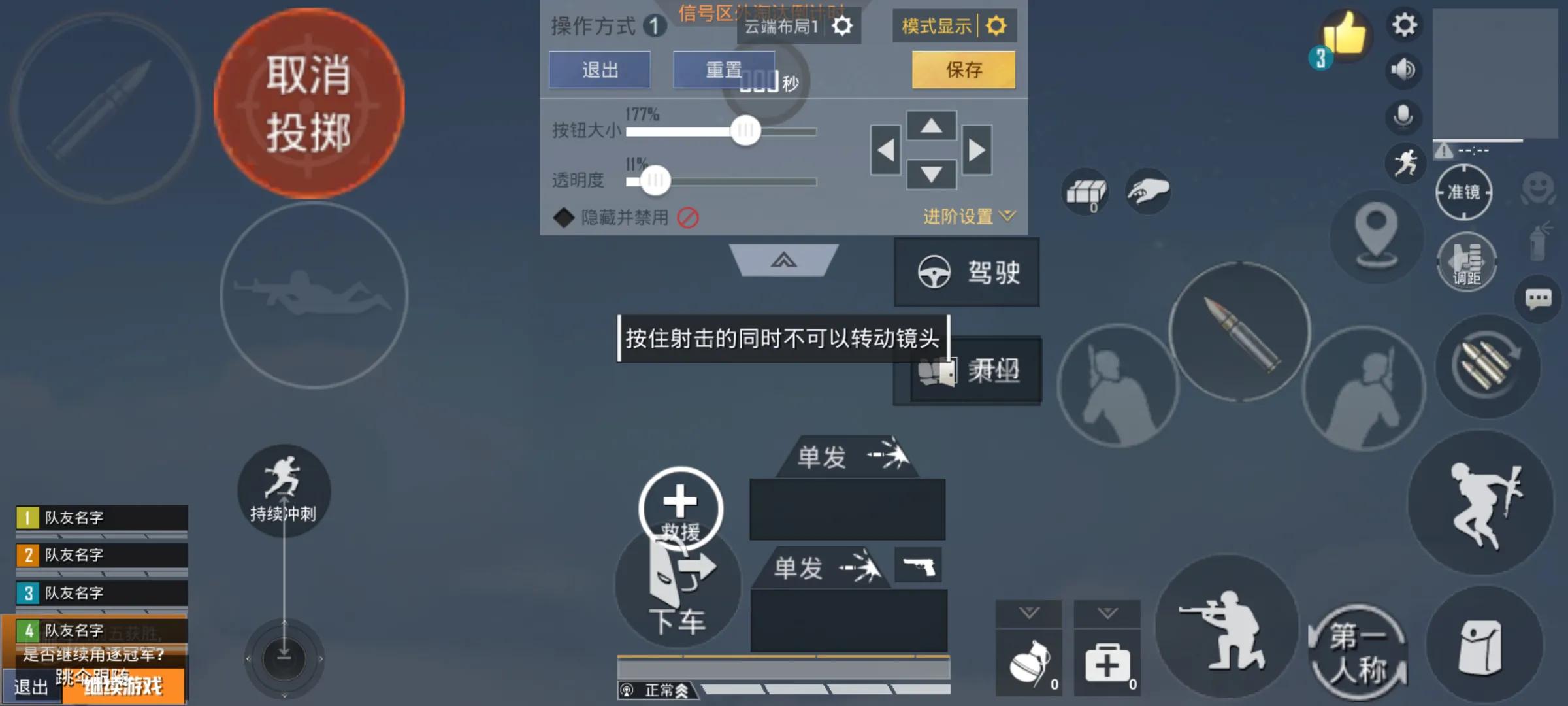 6.在掩体后往精确位置丢雷按住左手开火键,右手滑动小眼睛视角可以看到手雷落点并且微调方向,这个是右手开火键做不到的。