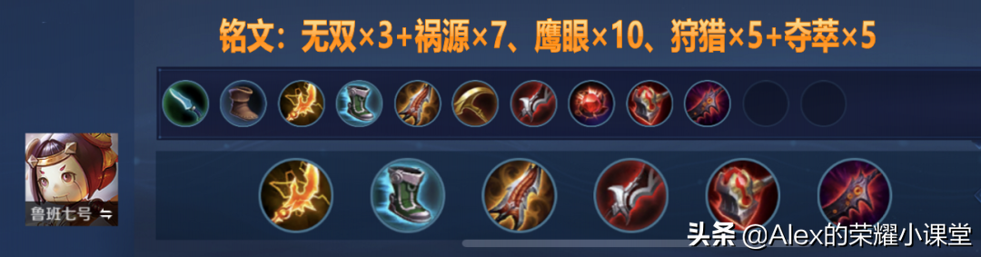 鲁班七号的被动扫射有三段伤害,可以触发三次末世被动,后期补个末世可以快速压低敌方坦克前排的血量,给己方战士刺客创造更多收割机会。