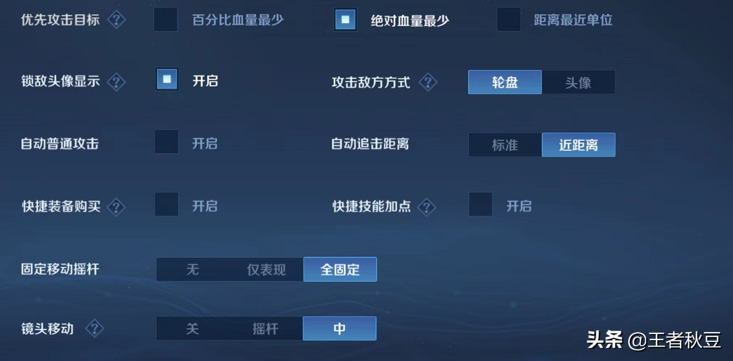 距离最近目标:优先攻击距离自己最近的目标。玩露娜可以开这个。