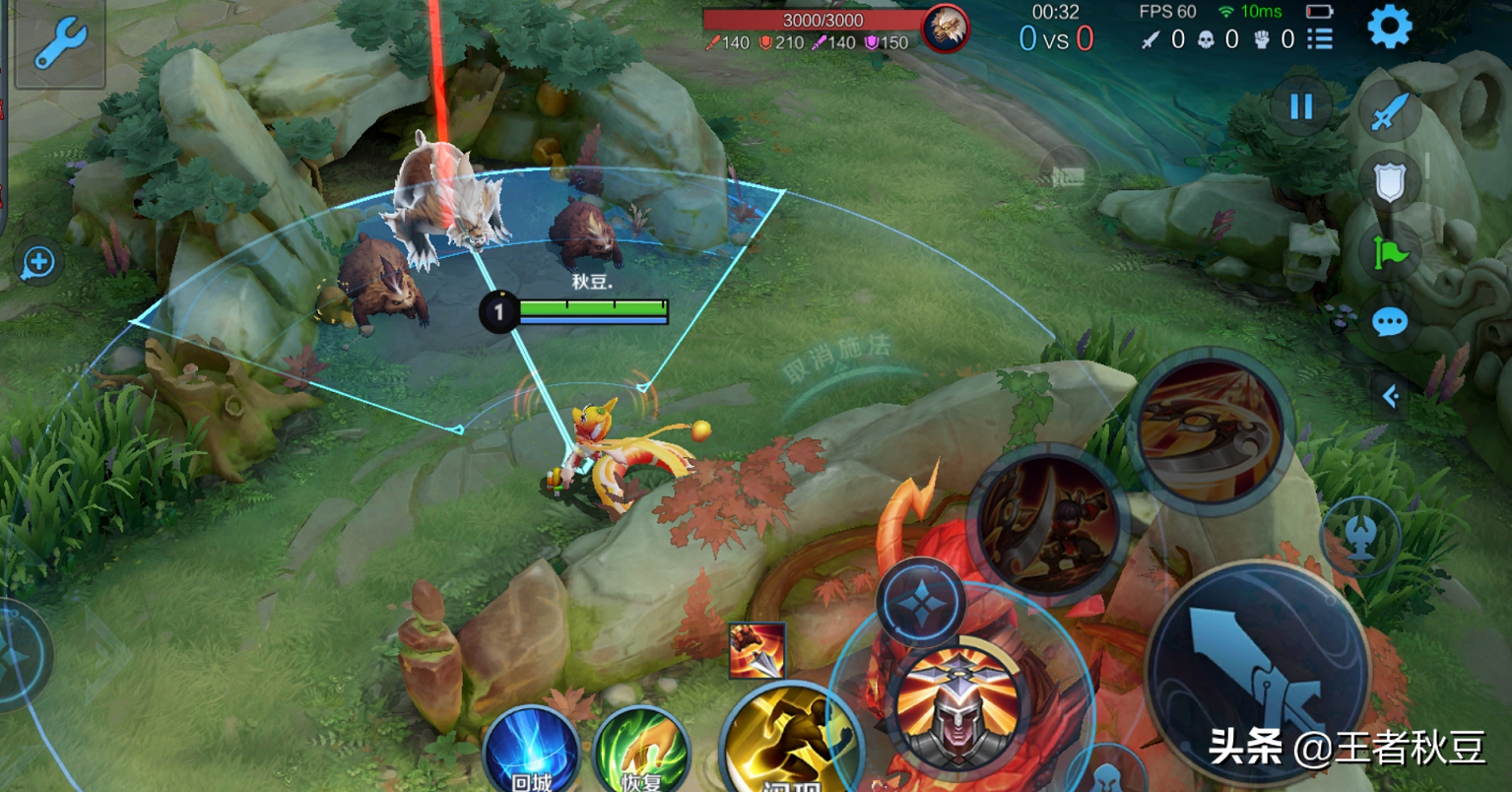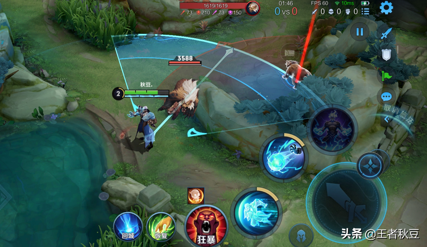 和技能轮盘索定一样,可以普攻轮盘锁定英雄,小兵和野怪。展示如下:对抗路抢2非常实用。