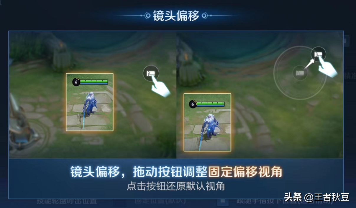 镜头偏移简称低配版三指操作,只需要按住按钮就可以调整视角,重新点一下就回归原视角。