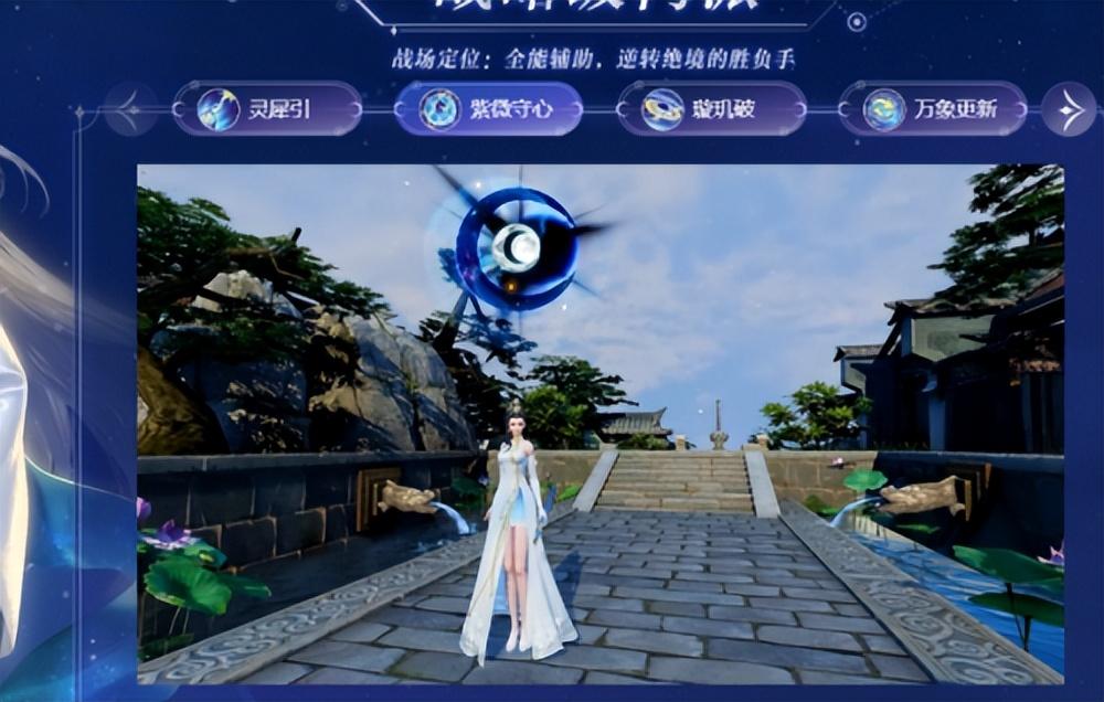 除此之外,在技能机制方面,官方也给了我们一大惊喜。北辰宫一共有三个特殊的技能,首先是灵犀引,它能够助力玩家和队友形成链接,让彼此的伤害妥妥降低,而且还可以恢复血量哦。除此之外就是紫薇守心,这个技能机制还是相当复杂的。简单来说呢,就是能够附身队友,并给队友get一个护盾,在受到攻击的时候,你还可以帮助队友分担伤害,并且对敌人进行自动攻击。最后一个技能是万象更新,通过刷新所有技能的冷却时间来达到进攻的目的,如果你和队友正在链接状态下的话,也能够同步刷新队友的技能。