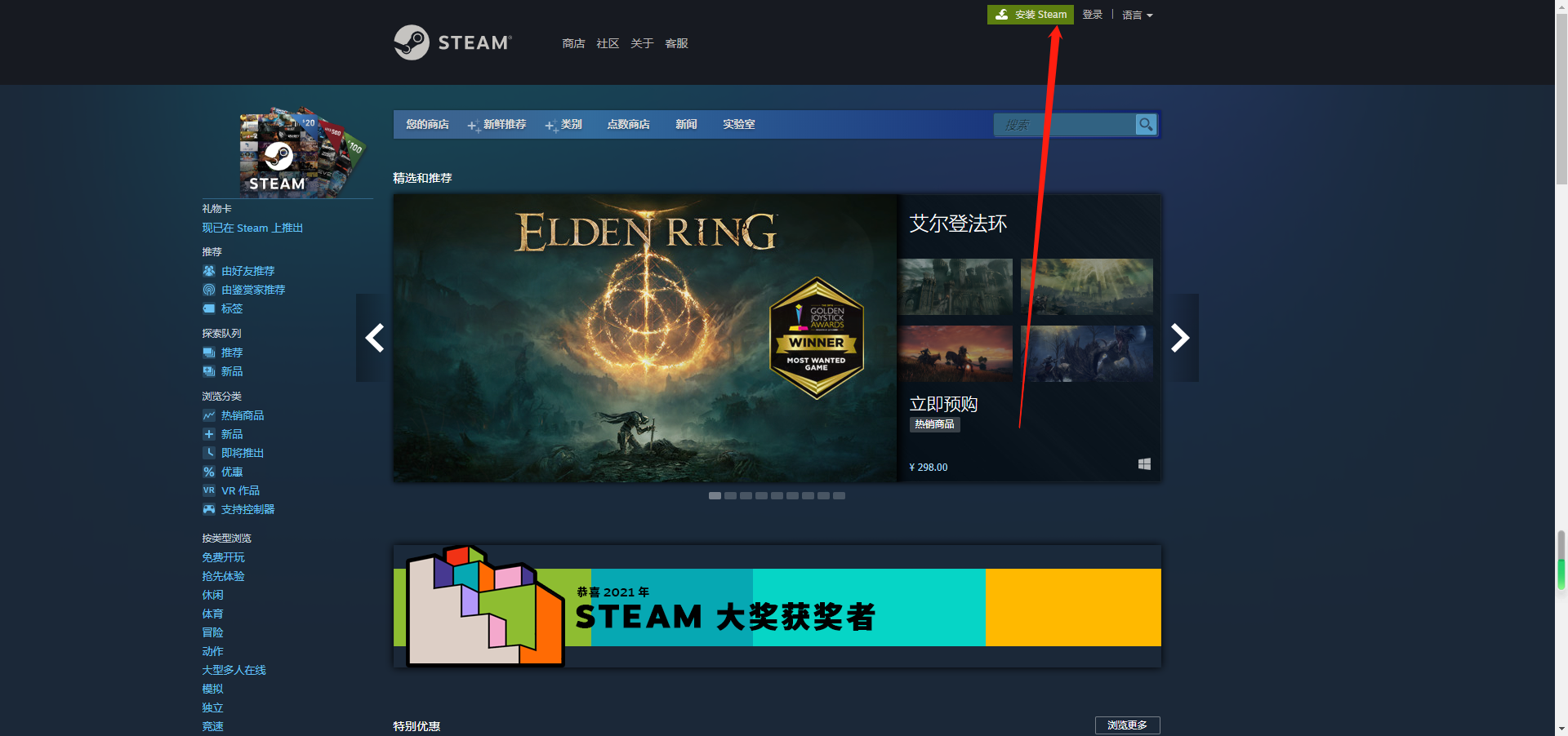 首先需要我们登录Steam官网下载Steam平台