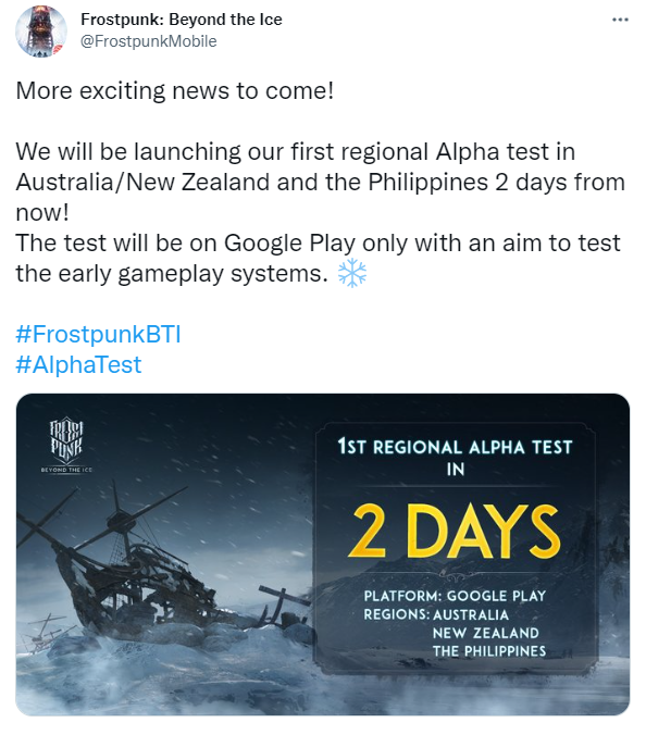 近日,11Bit工作室与与网易联手打造的《冰汽时代》手游《冰汽时代:Beyond the Ice》宣布将于4月20日起在澳大利亚与新西兰、菲律宾等地区展开Google Play测试。