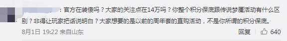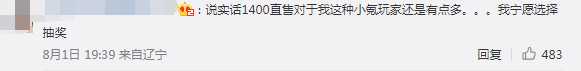 但这篇回应并没能浇灭玩家怒火,有玩家表示1400如果保底能出就算了,多一分钱都会骂,也有玩家表示大家想要的是以前周年套的直购活动,并不是保底,还有玩家则表示对于小氪玩家来说确实抽奖也算个参与活动的机会。