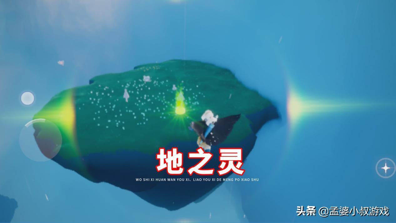 进入云野之后,往右飞,去往圣岛的方向。进入之后,会有一个过场动画,待动画结束后,角色正好站在一块台阶之外,往左下飞,最左的一块小浮岛,地之灵就在这里。如果你没有看到,那么就在这里等,有时候会有好几个人在这等。大概5分钟左右会刷新一次。