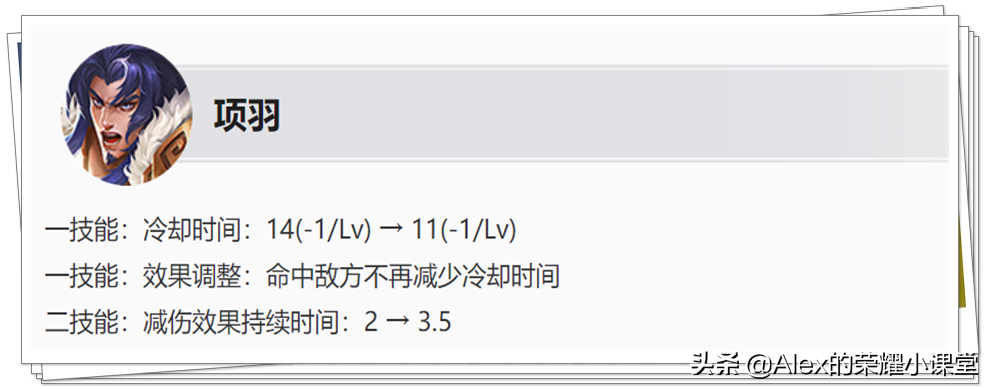 即一技能命中的情况下冷却时间和以前差不多,但是一技能空了的话,冷却时间比以前少了三秒,提升了项羽的容错率。