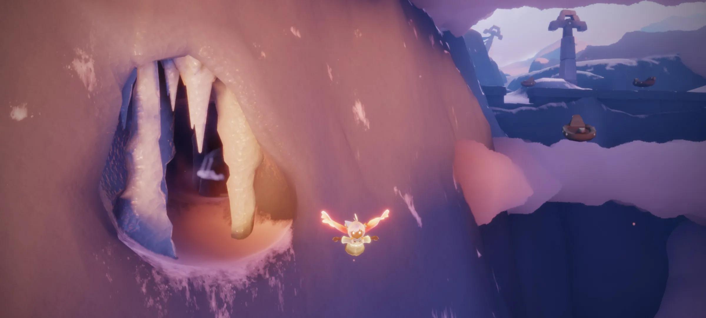 拿完之后往上来的地方飞回去,在半路中会有这样一个洞,往最里面走,就是最后一个翼