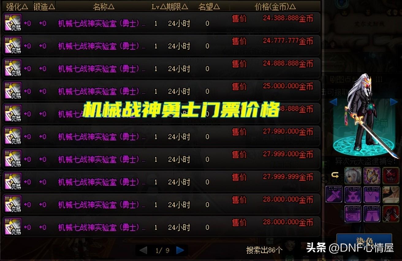 但对于土豪来说,是秒机械战神门票最佳时期,等大部队刷图点数没了,价格会缓慢上涨。那么爆出门票的,可以先留着,涨价了再出手,这样能多赚点金币。