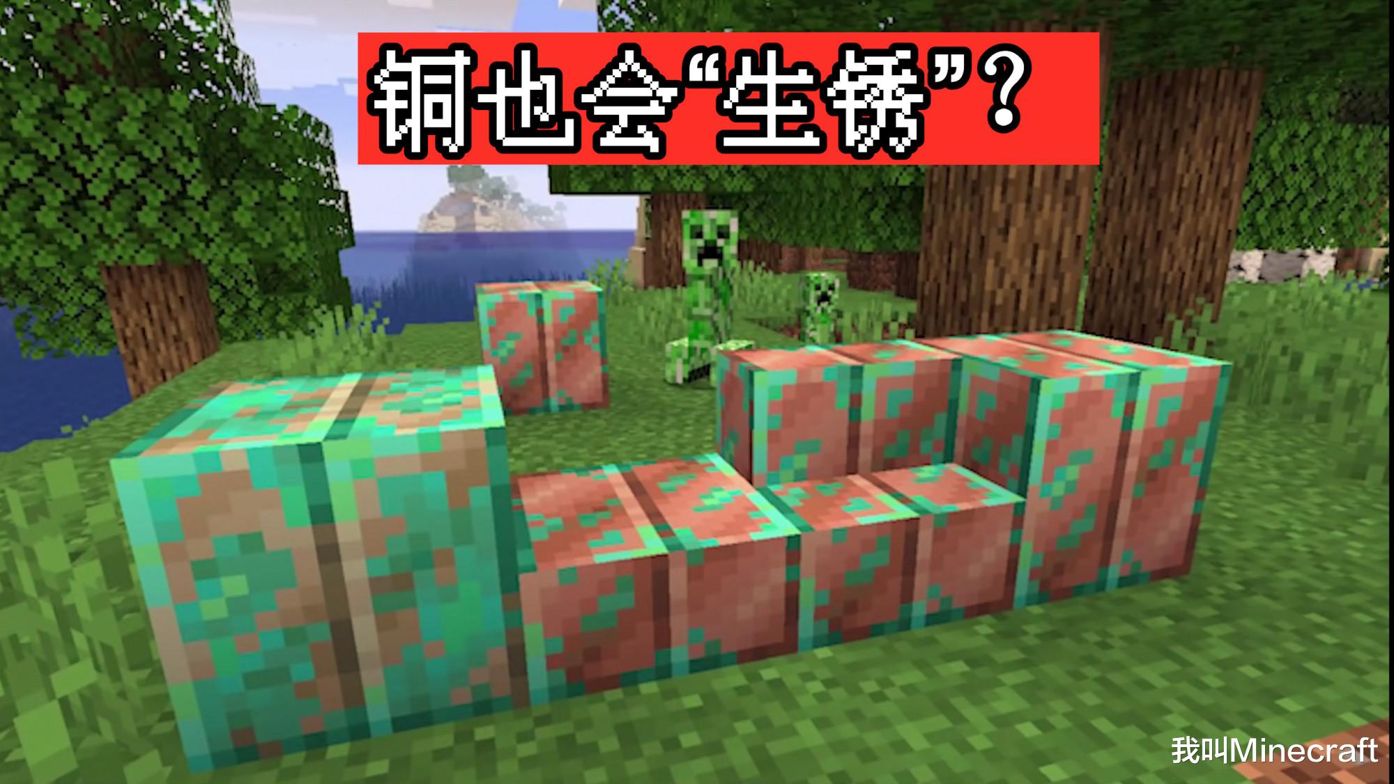 铜在《我的世界》被加入了“氧化”的设定,也是就生锈。原本古铜色的铜块,会随着空气、雨水、时间的推移慢慢的变成绿色。而这一过程需要经历4个阶段,换言之铜将经历4种材质变换,直至铜块完全变成氧化后的绿色。