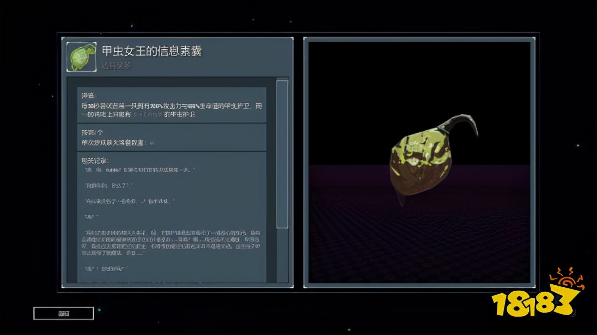 而除了具体体现在游戏里的效果,装备图鉴里还记录了一些故事,让玩家管中规豹,了解游戏以外的故事和世界是怎样的。像是道具“甲虫女王的信息素囊”就有相关记录,描述了此道具被发现时的具体场景。
