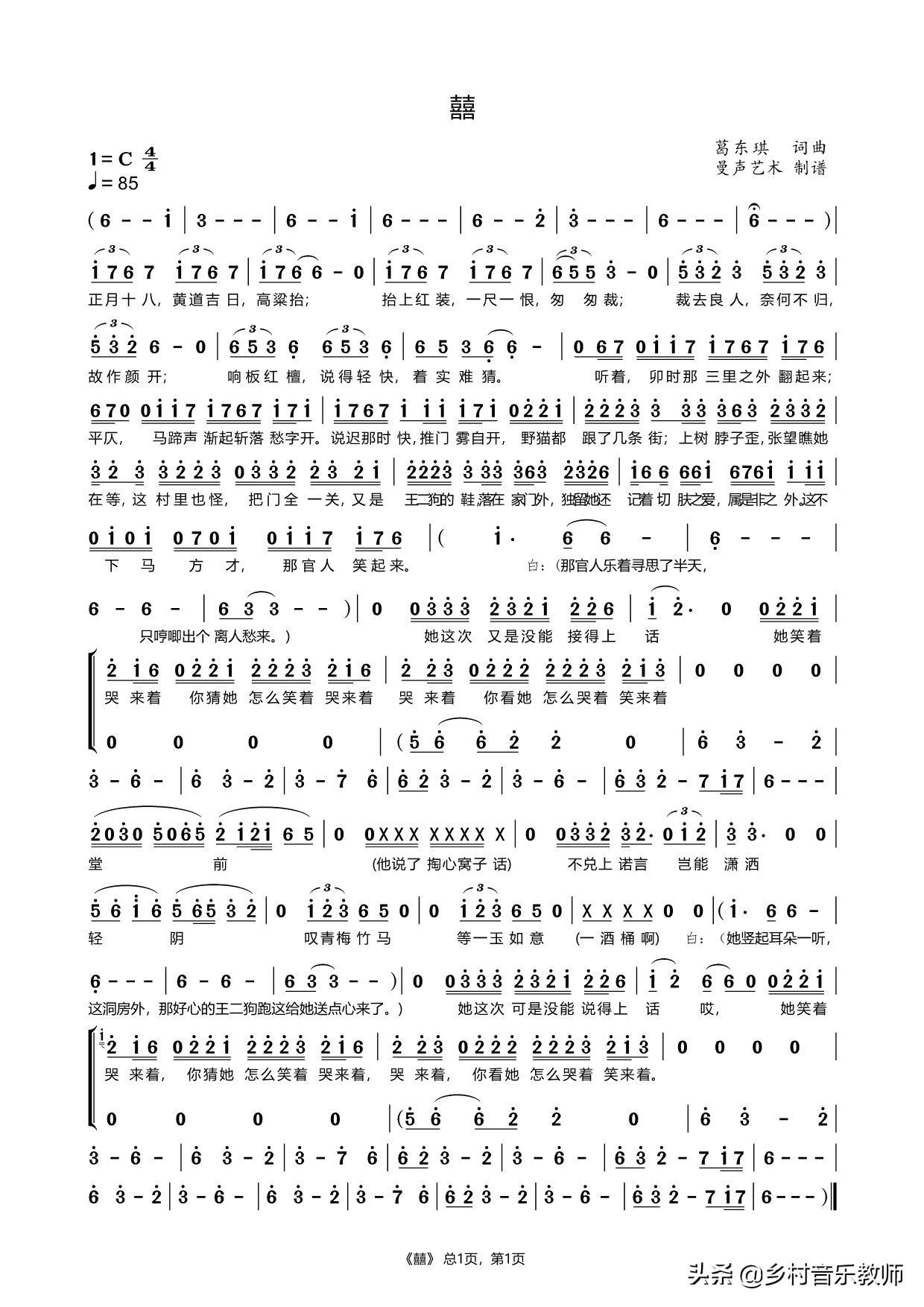 葛东琪 囍 简谱 谱子