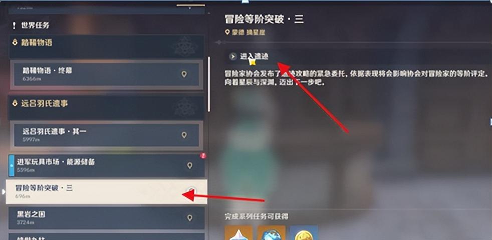 就可以看到冒险等级突破的任务,要求是需要玩家通关遗迹,简单来说,是需要玩家完成对应的任务之后才能提升世界等级。等级提升后,玩家大世界的怪物等级也会随之提高,所以说,就要玩家配备好自己的队伍后再选择提升等级。反之,如果配置太低,去打大世界怪物就有困难。