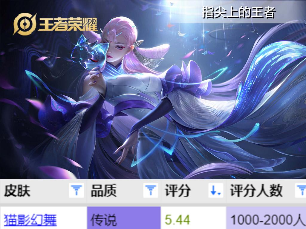 这款皮肤是猫神的fmvp专属皮肤,传说品质,胜在价格低,当时购买最低962点券就能到手,不过10个人买,8个人都说后悔了,玩不玩这个英雄不说,这个头型,这个出场动作的尬舞效果,以及并不出众的技能效果,难怪猫神自己玩貂蝉的时候宁可用伴生皮肤。