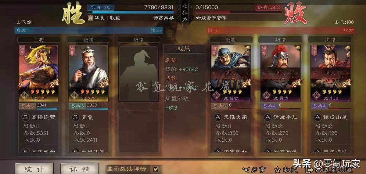 后续损兵其实都很少,主要输出还是依靠SP袁绍的主战法和文武双全的叠加效果。