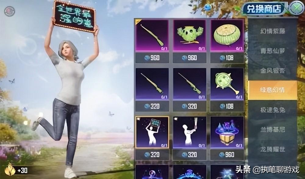 之所以如此肯定,主要是目前通过“解包”的方式,已经找到了“兑换商店”,可以从中看到“绿意幻情”系列,不仅有被升级之后的衣服,还出现了98K升级枪、降落伞以及仙人掌外形的飞行器。