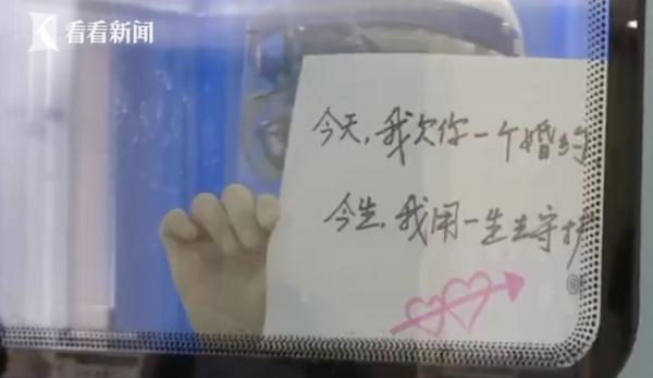 2月2日当天,他与未婚妻隔窗相望。写下了一段感人的誓言:今天,我欠你一个婚约。今生,我用一生守护。