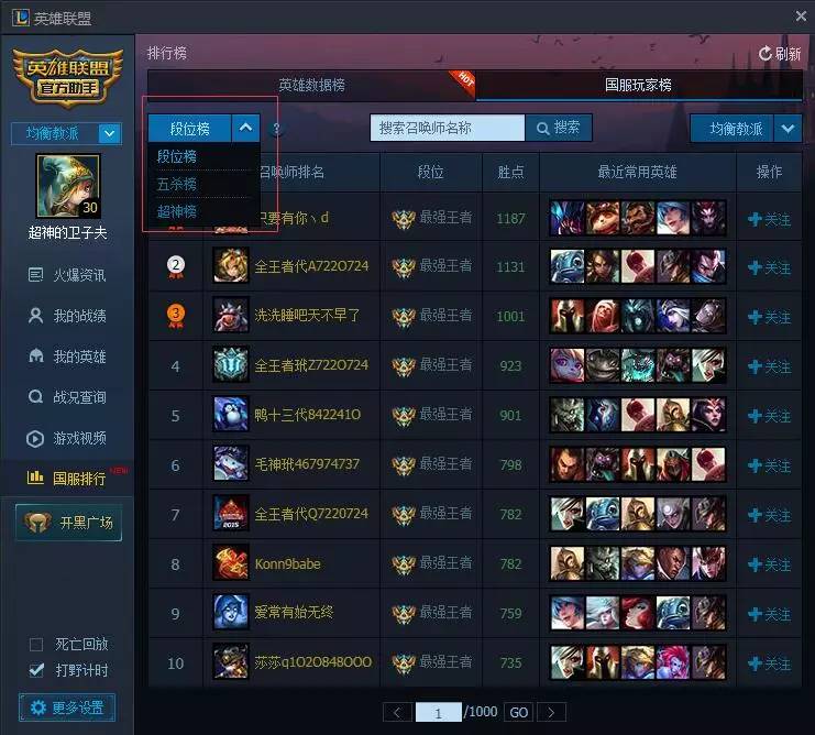 lol国服排行榜(掌上英雄联盟能查国服排行吗)