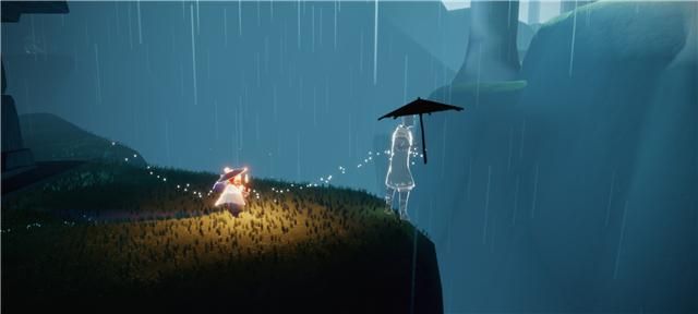通过官方晒出的海报,可以确定故事主角,他们分别是雨林害羞动作和鱼叫。前者位于荧光森林左侧小亭子,后者在水母图鱼骨处。在害羞先租的收集动画中,鱼叫先祖曾送给她一把伞。不知道玩家有没有发现,这段故事听起来像《白娘子传奇》,许仙和白素贞在西湖相遇,碰巧赶上雨天,雨伞就成了“定情信物”。