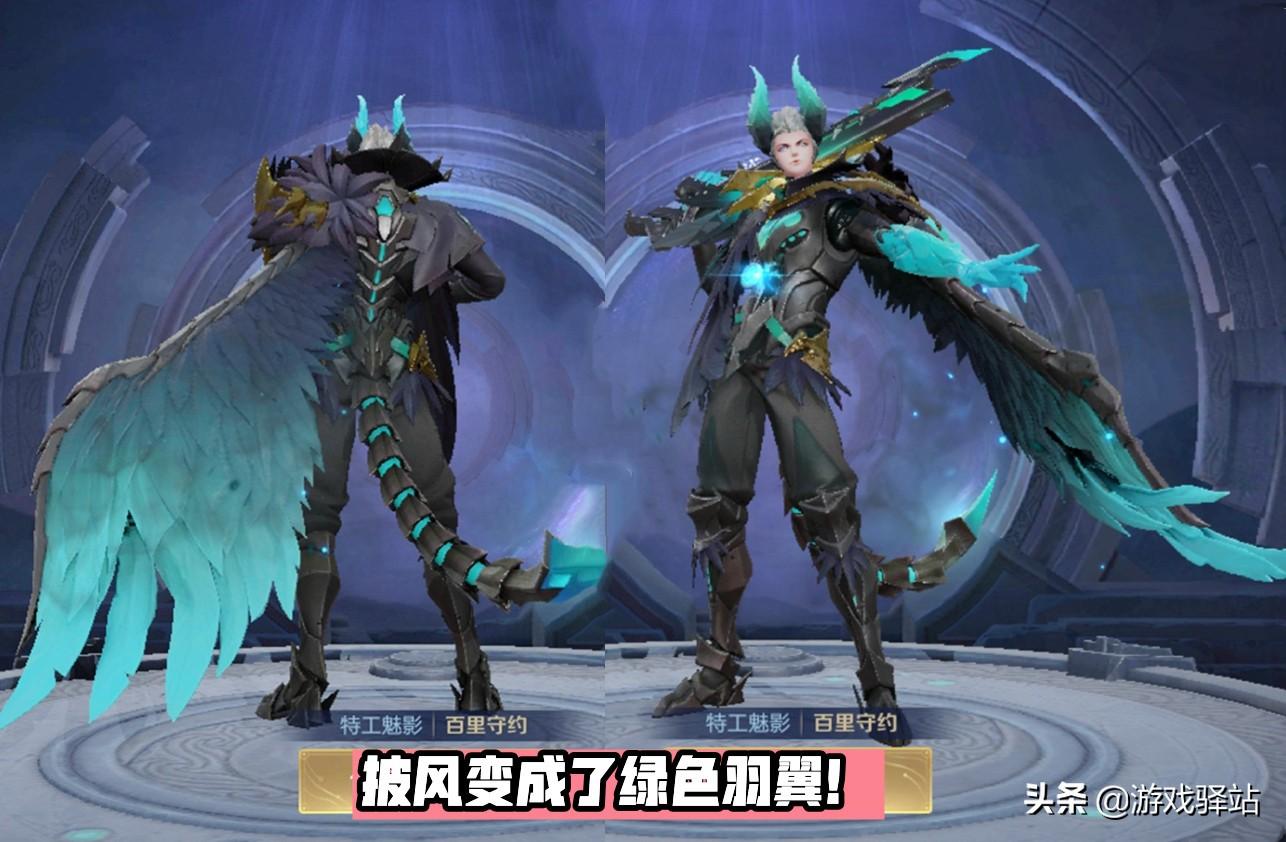 百里守约首款星元与原皮最大的区别是加入了羽毛元素,通过下图可以看到背后的披风直接变成了绿色羽翼(被玩家称为“绿百里”),其上还有黑色烟雾特效,预计局内技能特效也是以绿色为主。该星元将在6月8日随首届KPL夏季赛揭幕同步上架,感兴趣的玩家届时可消耗188荣耀币开启进阶战令提升战令等级获取。