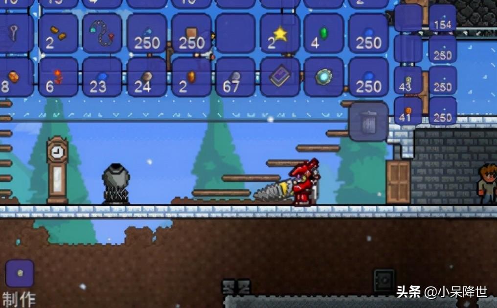 2、然后砸完祭坛,就造好房间,等来蘑菇人,买那个可以穿墙攻击的长矛,如下图所示。