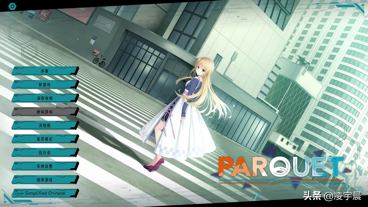 我认为背景设定是《PARQUET》的亮点之一,柚子社这次赶时髦玩了一次轻科幻题材,整个剧本有非常浓郁的赛博朋克味儿,之前有玩过《赛博朋克2077》或是Alicesoft的《多娜多娜一起做坏事吧》的同学会非常有亲切感。
