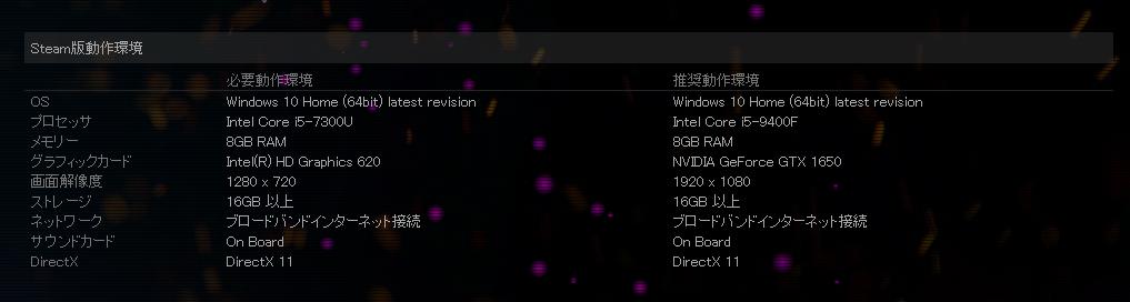 Steam版配置需求