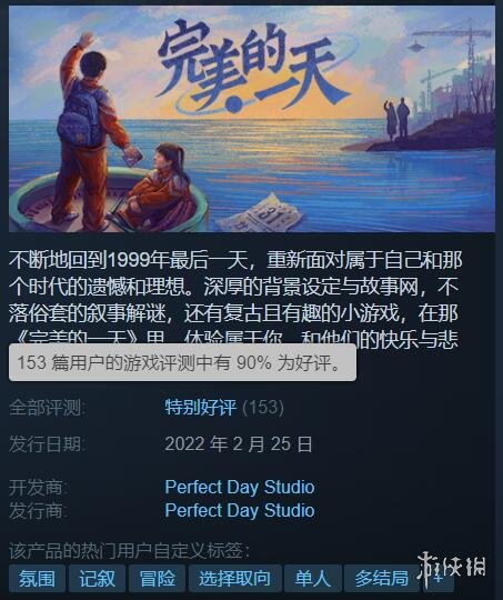 好评玩家表示,《完美的一天》绝对是值得玩的游戏,可玩性高,剧情好。