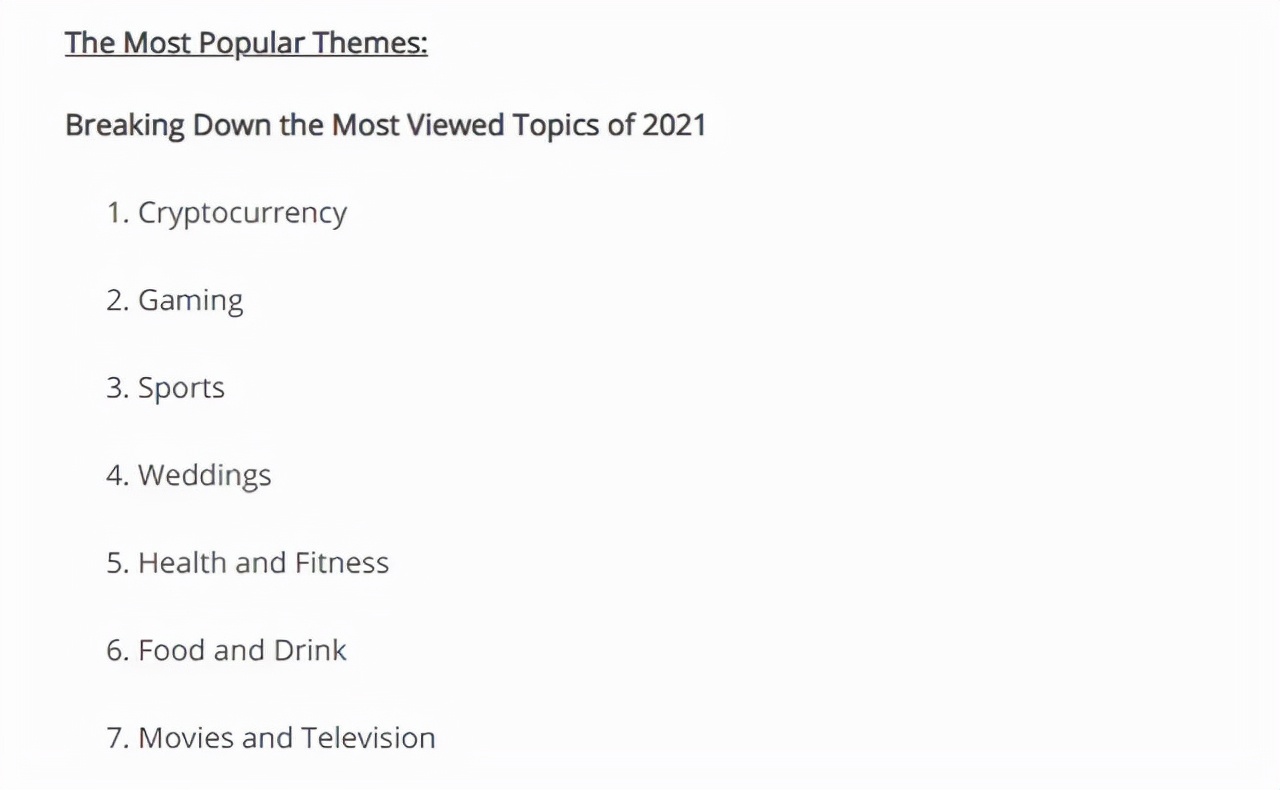 海外论坛类网站Reddit于近日发布了自家网站的年度总结《Reddit回顾2021:从URL到IRL(in real life)》。而在这份年度总结中,“游戏”和“运动”、“婚姻”、“健身”、“加密货币”等话题一起,成为了2021年所有用户最关注的话题。