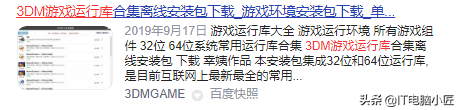 这种情况我们一般需要单独去找度娘搜索确实的文件名,然后下载一下。不过现在有一些游戏网站有热心玩家都做出了环境运行库,只要下载下来全部安装一遍,基本上绝大多数的组件缺失问题都能解决。
