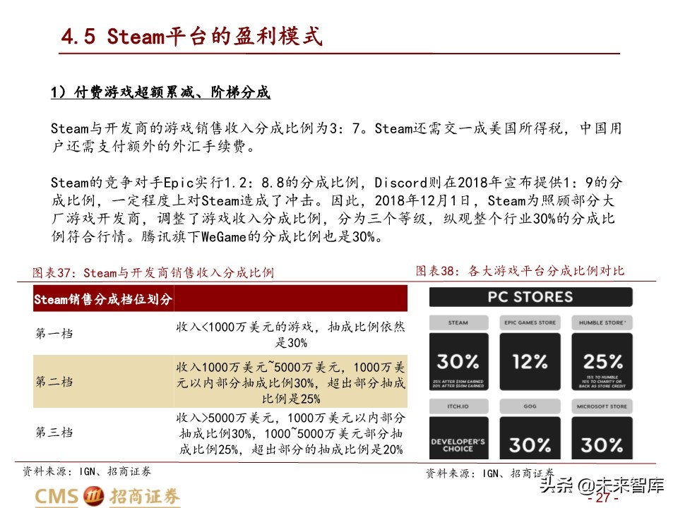 4.5 Steam平台的盈利模式 1)付费游戏超额累减、阶梯分成