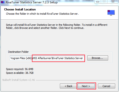 10. 选择安装目录,推荐放在AfterBurne主程序文件夹下(MSI Afterburner),方便管理,点Next。