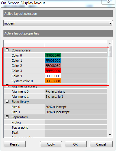 第七步:如果我们觉的图表颜色不好看,可以自已修改,同样打开AfterBurne设置-监控选项卡,点击三个点的按钮,拉到菜单的最上方,会看到有个标签颜色的子标签,这里的Color0、Color1、Color2等就是对应CPU使用率、CPU频率、CPU温度等,双击后重新选择一个新的颜色就可以了。