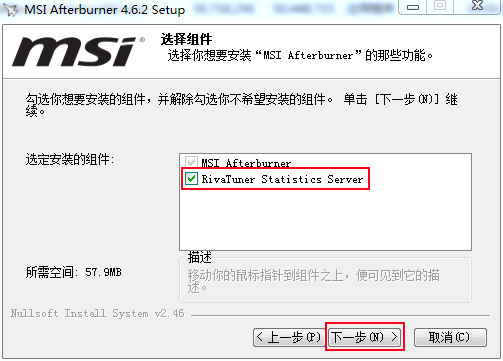 5.选定安装组件,这里的RivaTuner Statistics插件一定选上,点下一步。