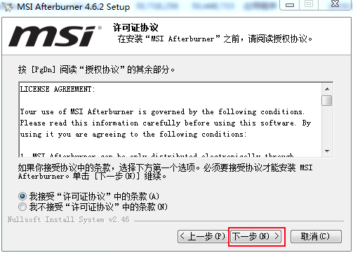 2.下载完成后我们会得到一个ZIP的安装包,解压安装包,双击这个安装文件MSIAfterburnerSetup462.exe。