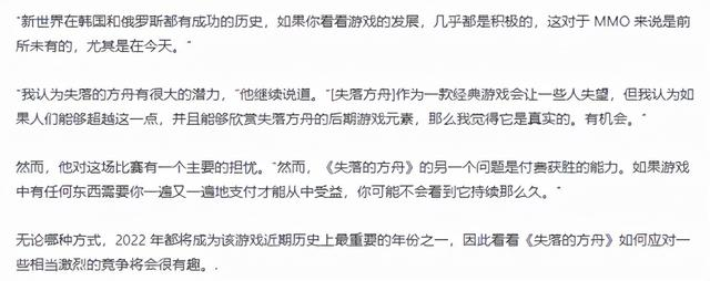 不少外媒也都献上了彩虹屁大大夸奖了一番《失落的方舟》,觉得可以取代之前的《新世界》,还称它为——或许是2022年最好的MMORPG,这个帽子真够大的。