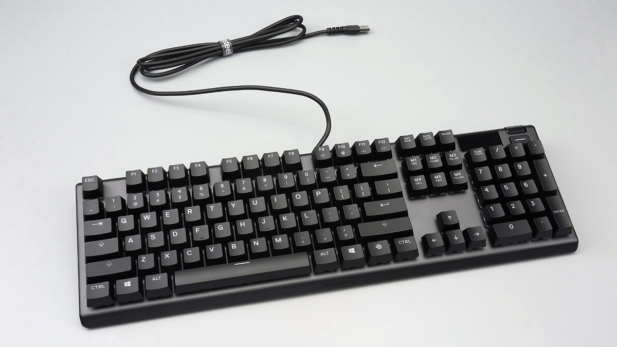 赛睿APEX 5虽然定位主流级别,但是在用工和用料上丝毫不输旗舰级的APEX Pro,航空级铝金属有着出色的质感和耐用性,整体造型风格的设计也与APEX Pro相同。APEX 5保留了独具特色的OLED显示器,可以通过它来进行免驱动调节,还可以设置屏幕的挂起时间、亮度、锁定等选项。对于键盘的一些常规参数调节,通过OLED屏幕能够更加快速方便地进行设置,大大增强了玩家的使用体验。