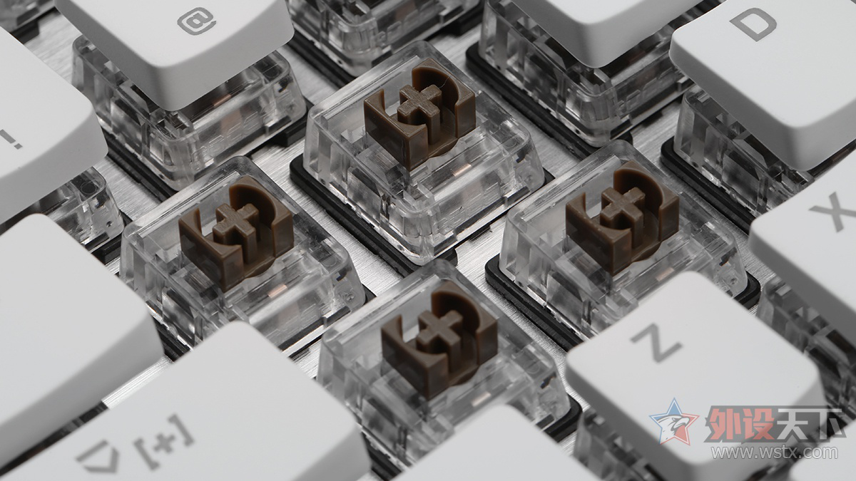 这款键盘最大的特点是采用了HyperX Aqua轴体,属于无声段落轴,在手感上与线性轴直上直下的感觉不同,在敲击的过程中有一定的段落感,反馈的感觉更加清晰,在体验上与茶轴的感觉近似,手感十分不错,受到众多玩家的好评。