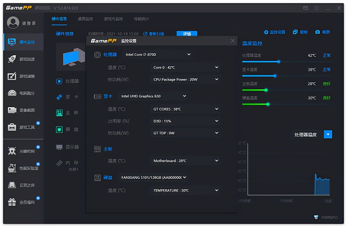 硬件信息自动获取电脑的硬件配置信息。桌面显示在桌面上实时显示硬件运行信息。游戏内显示游戏内硬件监控,游戏内设置操作游戏提速根据不同的电脑配置有针对性地调整电源方案。热键屏蔽游戏过程中可以选择屏蔽部分系统按键。
