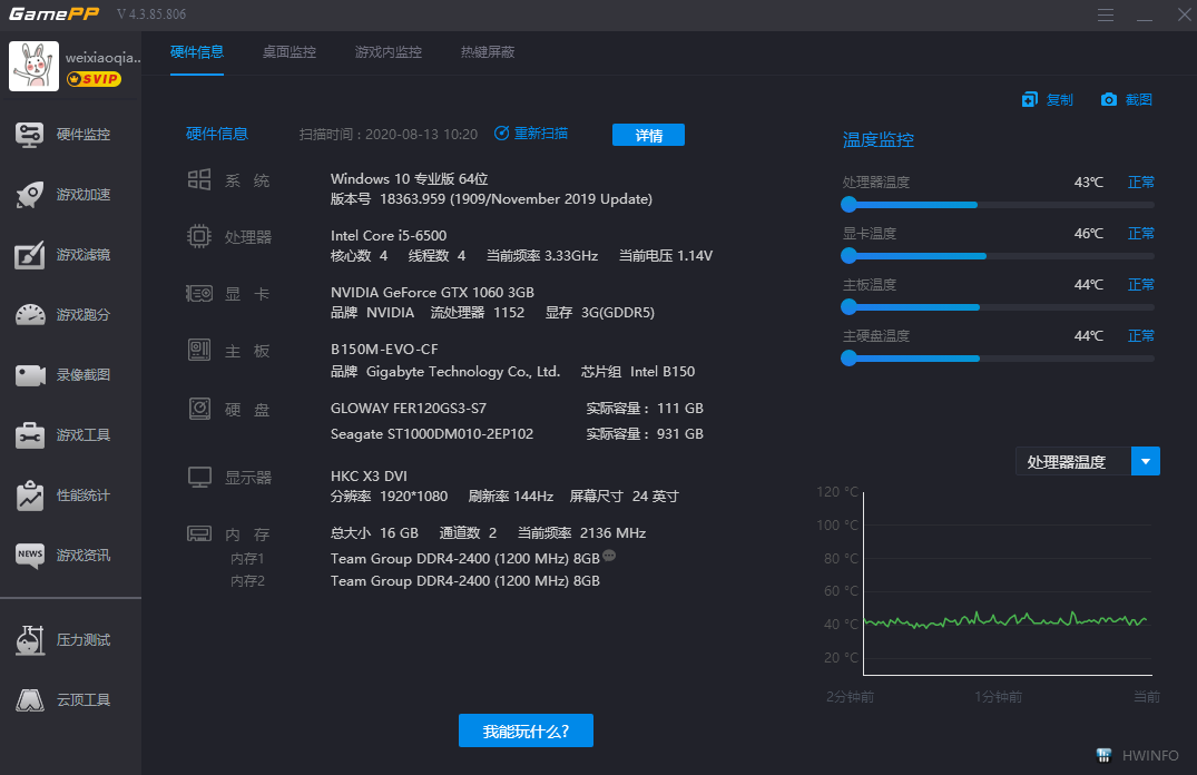 1、首先,用户将游戏加加打开,点击左侧栏的“硬件监控,从而继续下一步操作。
