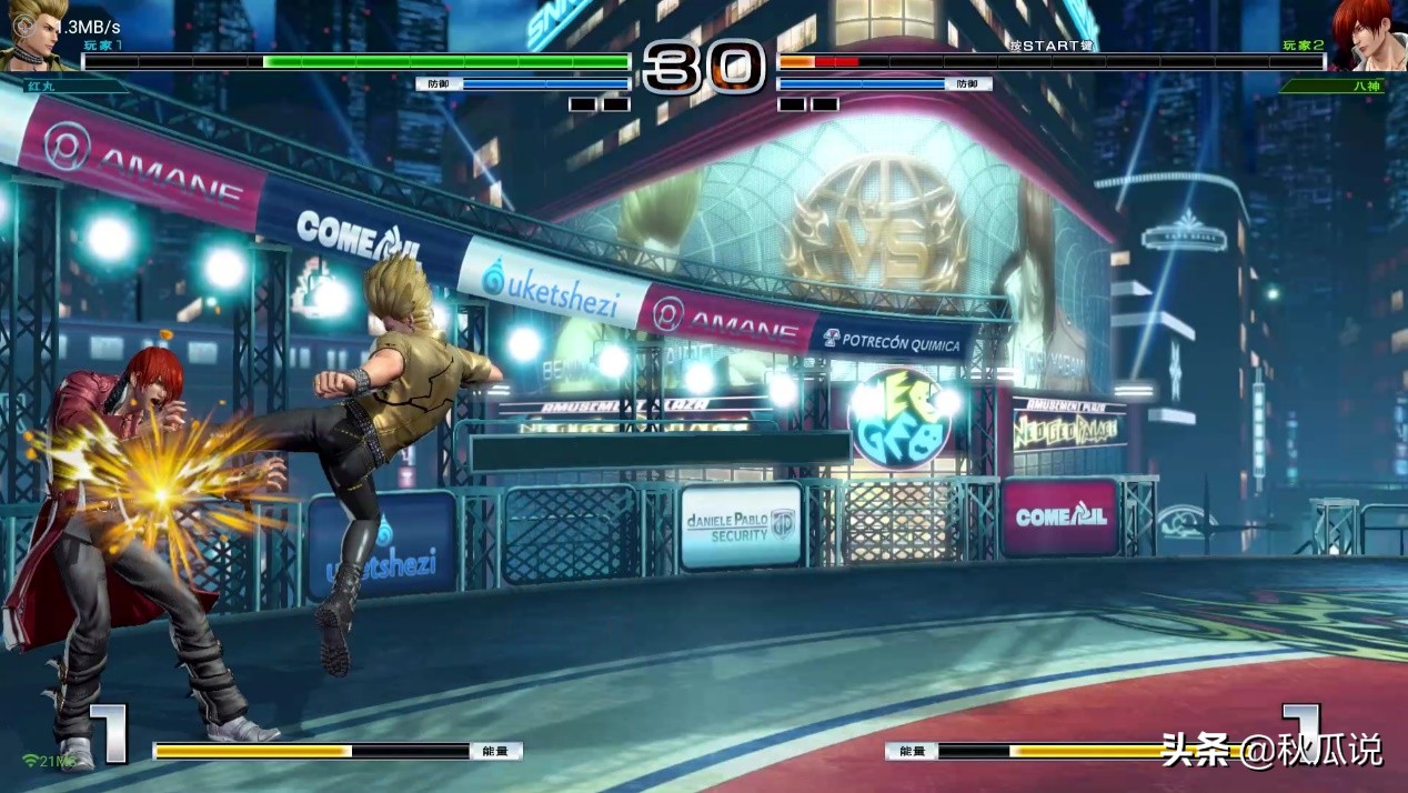 而在实际云游戏体验方面:官方建议是50M独占带宽以上,3A游戏大作可以顺畅玩耍。在进入游戏画面之后,在画面的左上角是实时的网速,左下角为本地网络和云服务器的延迟。我在实际体验《拳皇》和《荒野飞车》的时候,实时网速在1.2MB/S左右,换算成带宽独立使用在15M带宽左右(用的是wifi连接)。在游戏体验过程中画面表现还是非常令人满意,拳皇这类对延迟非常高的游戏也能正常玩耍,在玩《荒野飞车》的时候启动的时候短暂的出现了画面马赛克现象,但是实际也不影响正常游戏。