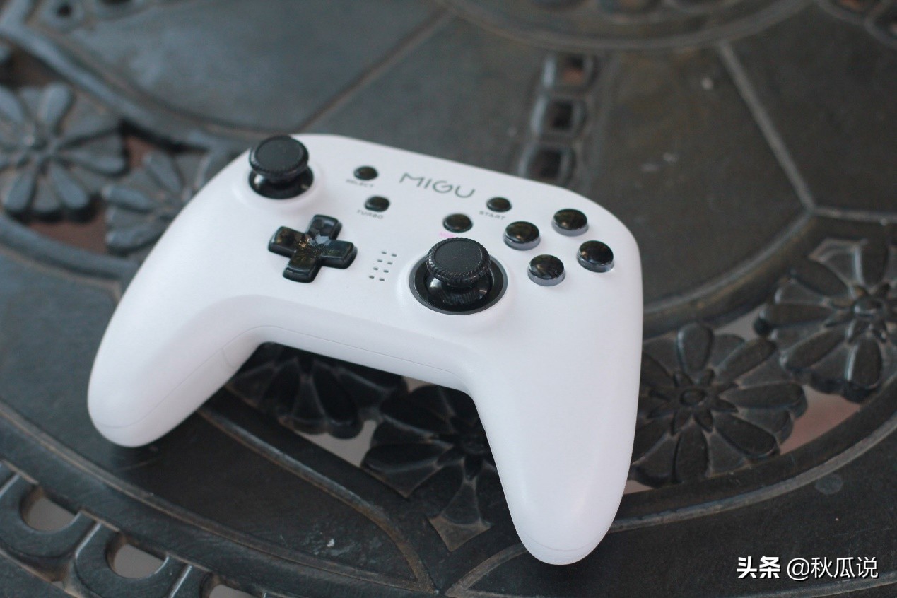 手柄则采用的是2.4G+蓝牙双模连接,正面有"migu"键和TUBO键,同时按住这两个按键可以快速连接云游戏盒子。在第一次连接云游戏盒子后,下次连接盒子只需按"migu"键连接。而在背部增加有M1M2M3M4按键分别对应音量+、音量-、返回键和确认键。除了适配云游戏盒子本身之外,也能支持手机、PC、电视等终端。