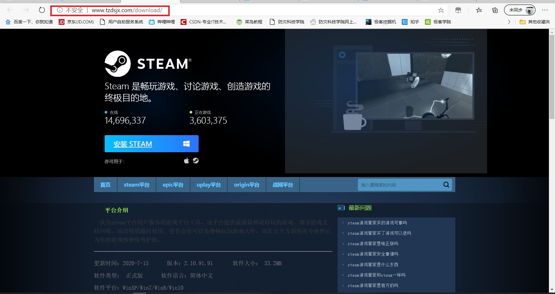 通过该页面的“STEAM下载“按钮,下载后却是游戏管家。